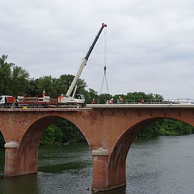 D'une longueur de 161m, ce pont construit en 1887 permet le franchissement du Tarn par la R.D. N°94. La rénovation de cet ouvrage était nécessaire pour réparer les désordres affectant les maçonneries et améliorer la capacité de circulation pour permettre notamment le croisement de poids lourds.